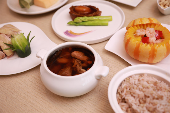 月子會所的資深營養師團隊頂級廚師團隊打造-調--四階段餐食配方,做到26天一日六餐私人定制主食、主菜、副菜、點心、飲品、水果同時還提供各類湯茶,打造科學營養的月子餐做到寶媽只發奶不發福讓坐月子像一場美食旅行